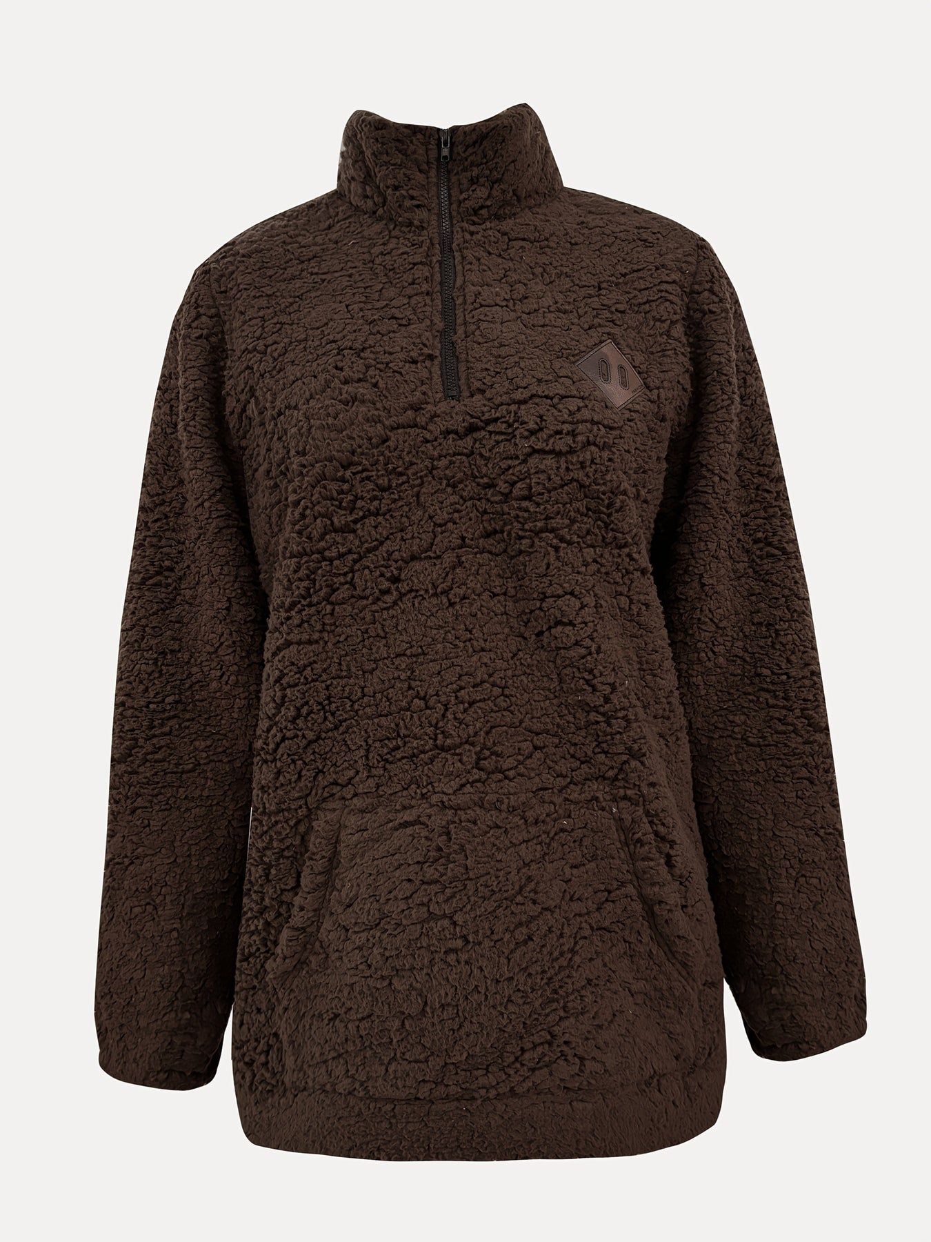 Sweter NOREEN to idealny wybór na zimne dni. Wykonany z miękkiego materiału teddy, który zatrzymuje ciepło i zapewnia maksymalny komfort. Zamek przy szyi dodaje swetrowi sportowego charakteru i ułatwia noszenie kołnierza otwartego lub zamkniętego.