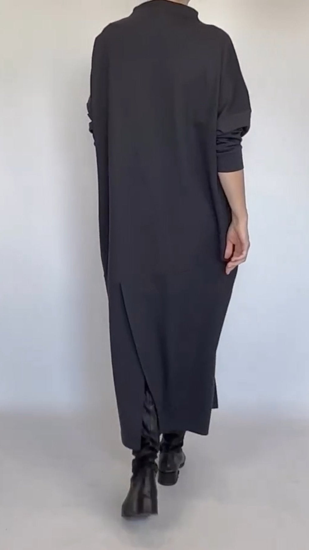 Damska sukienka z okrągłym dekoltem i jedną kieszenią