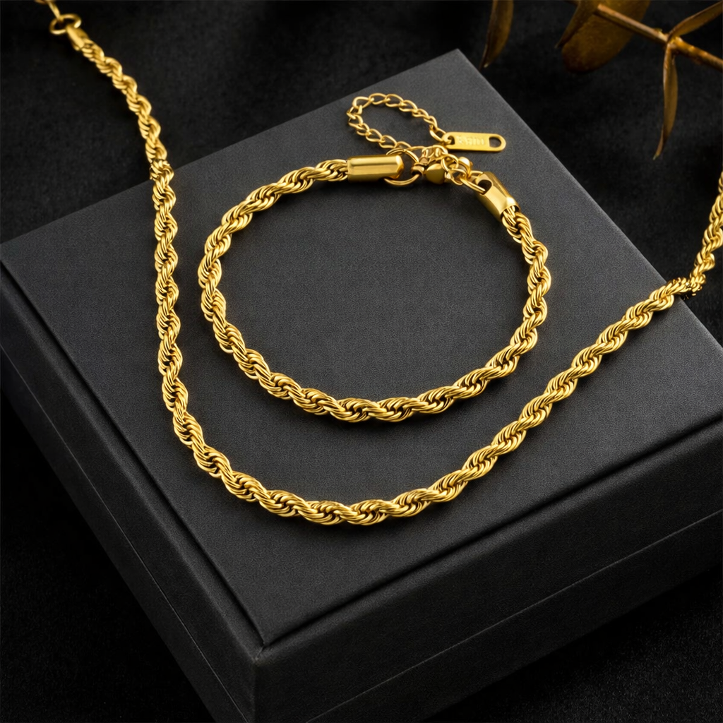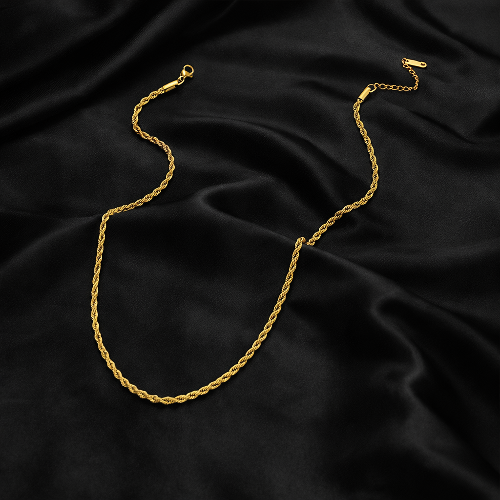 Ten naszyjnik wyróżnia się klasycznym, wyrazistym designem o ponadczasowym charakterze. Wykonany jest w formie skręcanego łańcuszka typu kordel, w którym kilka cienkich splotów zostało spiralnie ze sobą połączonych. Tworzy to charakterystyczną, „linową” strukturę, odbijającą światło pod różnymi kątami i nadającą biżuterii dynamiczny, luksusowy połysk.